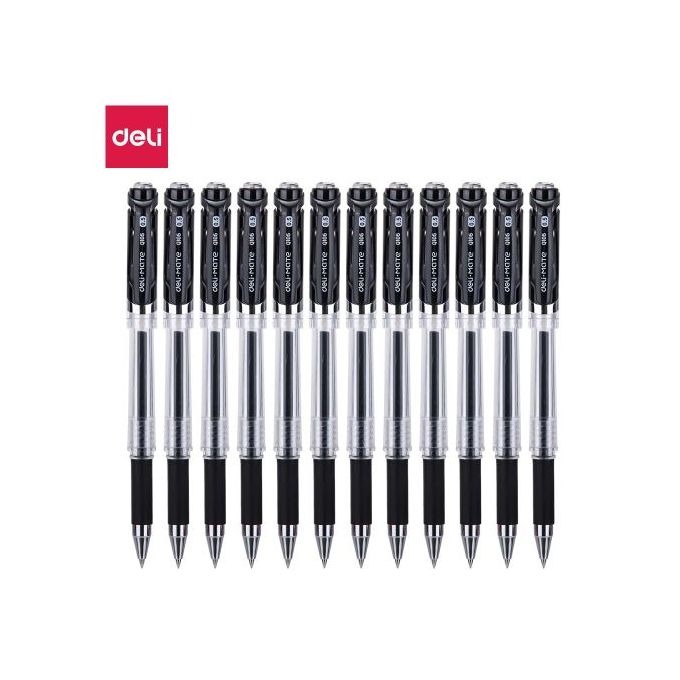 BOITE DE 12 STYLOS GEL DELI-EQ10520 – 0,5mm Noir