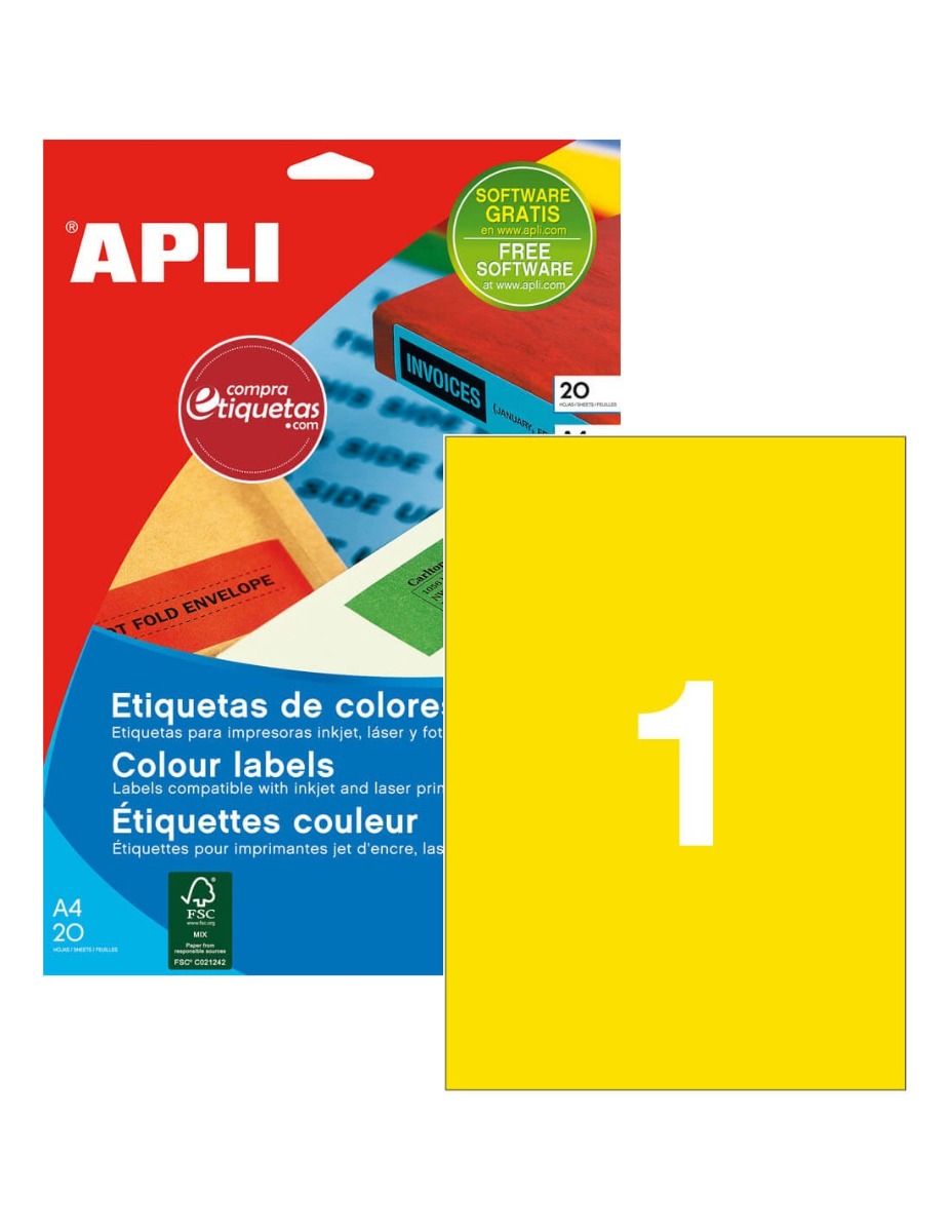 Étiquettes jaunes APLI permanentes 210,0 x 297,0 mm 20 feuilles (01599)