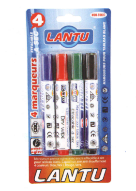 Pochette de 4 marqueurs pour tableaux LANTU pointe ogive Col assorties